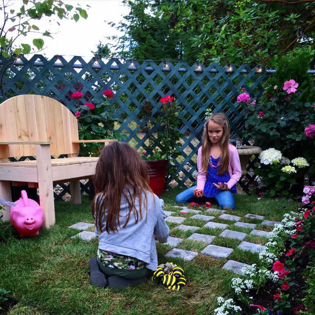 De todos los proyectos locos que he hecho, ésta es más cercano a mi corazón. Hemos hecho todo en secreto sin su darse cuenta de lo que estaba sucediendo. Le dijimos que estábamos haciendo un espacio de almacenamiento para herramientas de jardinería y nunca pensó dos veces. En su cumpleaños le regaló el DVD de la película y una llave para abrir la puerta. Ella estaba totalmente confundida sólo para ser sorprendido con probablemente el mejor regalo siempre. Todos los kiddos en la fiesta estaban flipando. Ahora ella tiene un lugar privado para ir a esconderse de su hermano y leer un libro, jugar o hacer sus deberes en un día soleado.