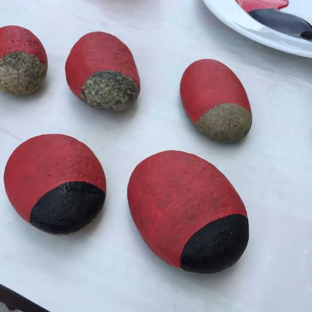 Si desea puede pintar una corona en la parte inferior de las rocas. Cuando usted consigue "kinged" puede flip simple la roca encima.