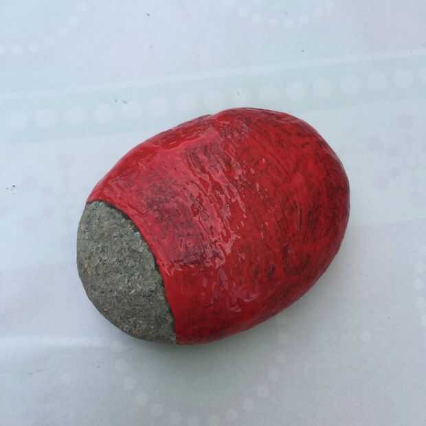 Empezar por pintar la roca roja dejando una pequeña porción en la parte superior de la cabeza.