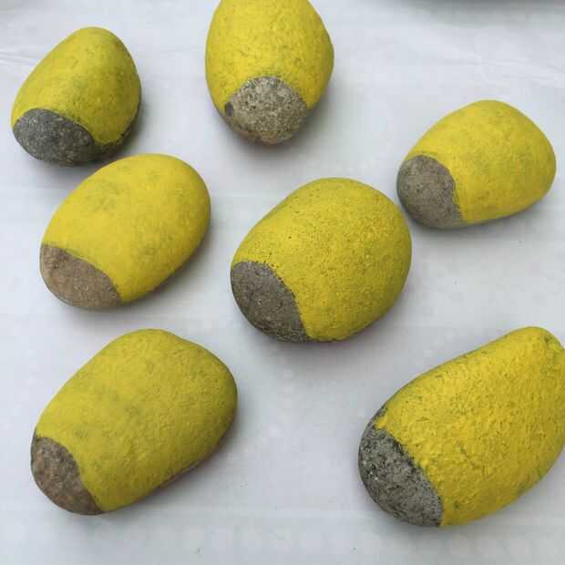 Empezar pintando el las rocas amarillo pero deja una porción en la parte superior de la cabeza.