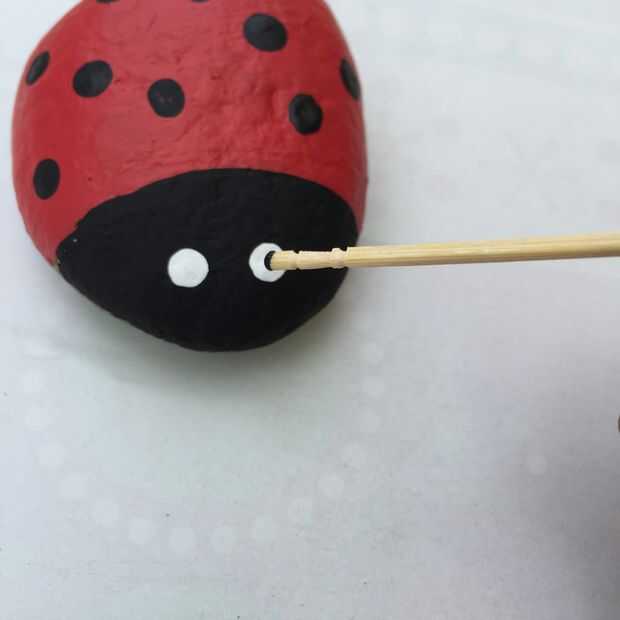 Entonces, usando un pequeño pincel o un palillo hacer dos pequeños puntos negros en el centro de los puntos blancos