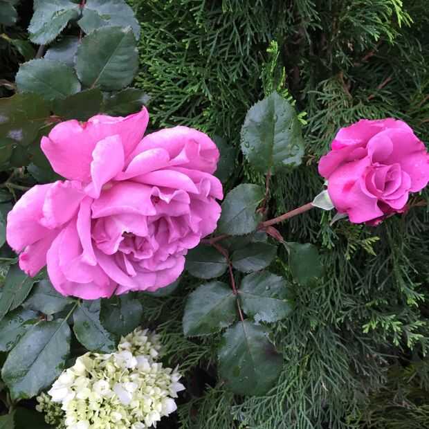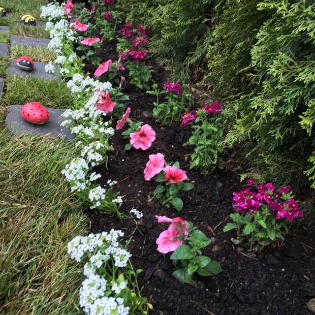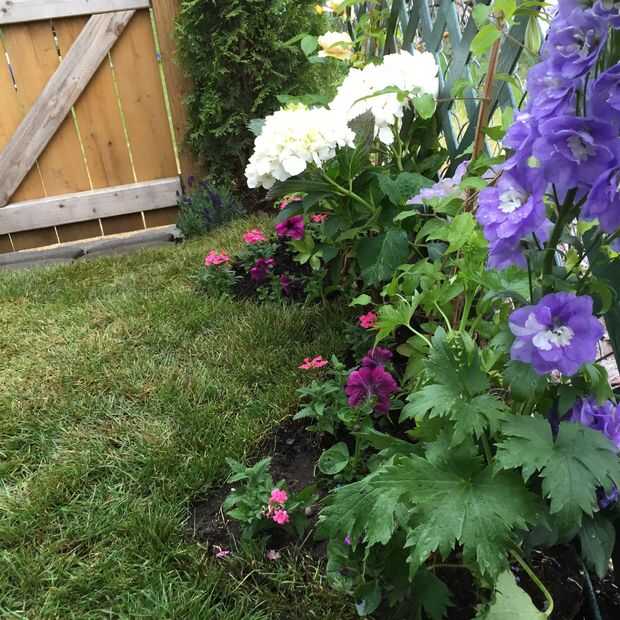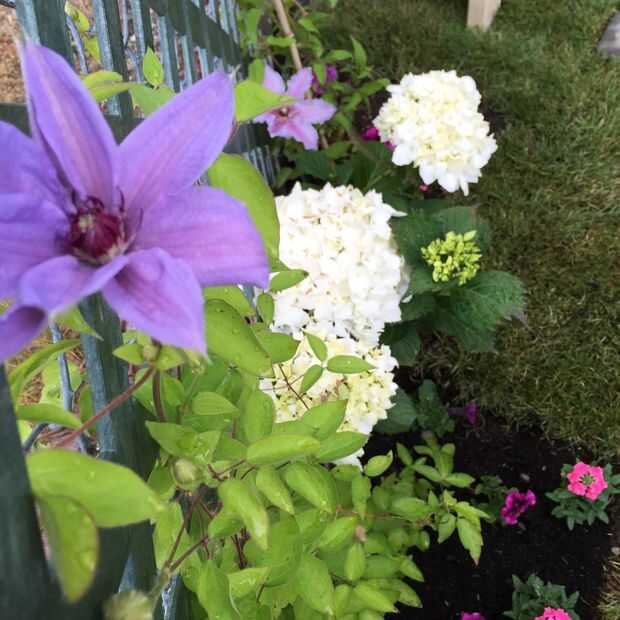 Para el resto de las plantas en el jardín elegí a mis hijas favoritos. Quería un arco iris de colores y un montón de rosas. He intentado ponerlos en lugares con menos contacto o eliminar las espinas que están demasiado cercanas. Usé el Clematis y vid plantas a lo largo de la red de arrastre. Petunias, hortensias color de verano y espuelas de caballero. Lavanda en la entrada para llenar el lugar con una agradable fragancia. Me gustaría ser capaz de cambiar las flores así que mantener la zona larga de plantas anuales y bulbos.