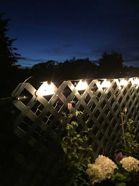 He comprado luces del mundo al aire libre al final de la temporada por lo que fueron realmente baratos. Tienen clips en los que os adjunto con el entramado. Me aseguré que el extremo del enchufe fue en la misma área que el enchufe de la fuente. Luego usé un cable de extensión al aire libre con tomas de corriente. Enterré el cordón para que ni siquiera sabes está ahí y es fácil de encender y apagar.