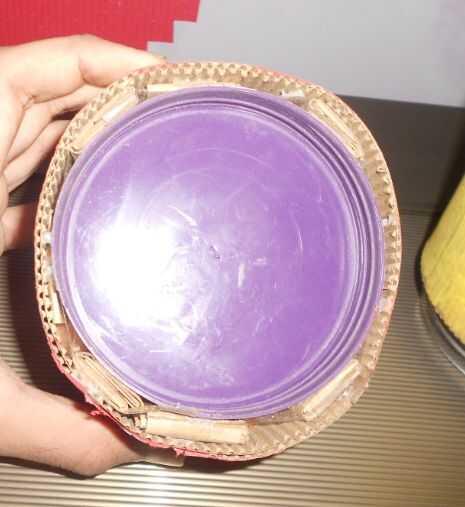 2: envase de cartón y hacer cono usando taza y pasado luego en la parte superior del cuerpo