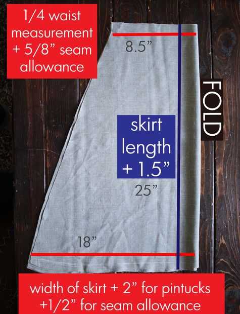 4. medidas de conexión: para obtener una costura lateral, conectar las medidas de cintura y el dobladillo de la falda en un ángulo recto y cortar las mitades de la falda