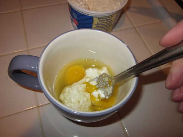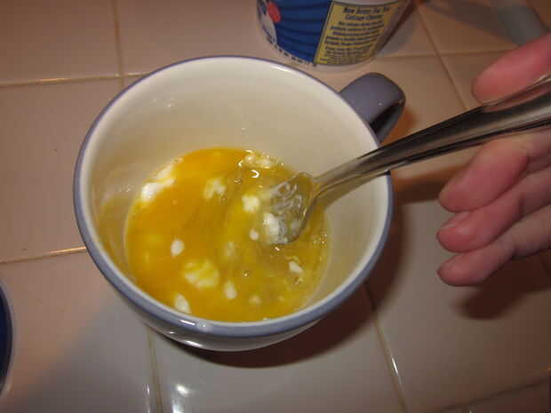 Nota: se verá blanco trozos de queso cottage pero las claras de huevo y la yema de huevo deben incorporarse plenamente.