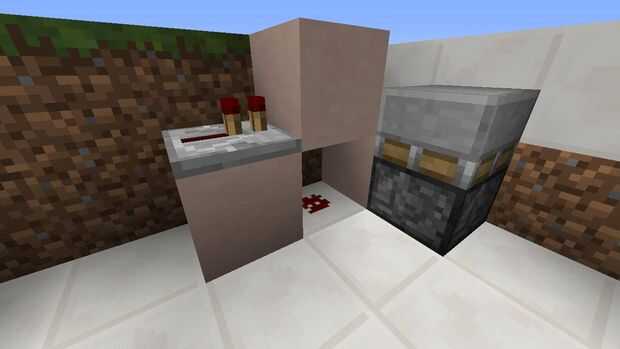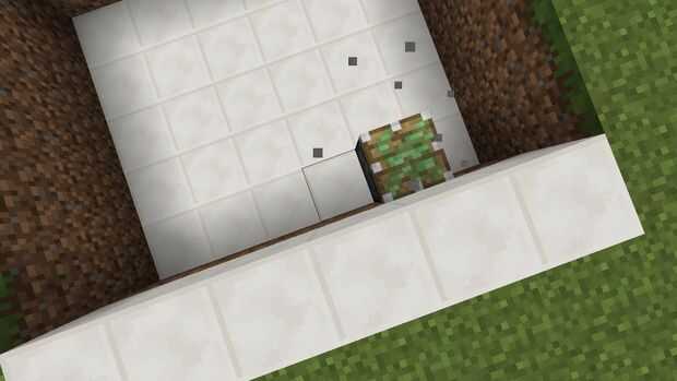 Primero hacen un agujero de 6 x 6 en el suelo tiene que ser demasiado profundo. Luego en el segundo piso a pie del lugar adecuado una pegajosa los pistones hacia arriba y coloque uno de su ladrillo medias losas en él y luego a la derecha del pistón Coloque un bloque de redstone en él enseguida, coloque un pedazo de redstone polvo delante de él un bloque de eso. a 2 cuadras más al lado de la piedra roja y un repetidor en el bloque y una antorcha de redstone junto a él.