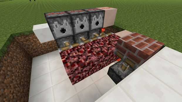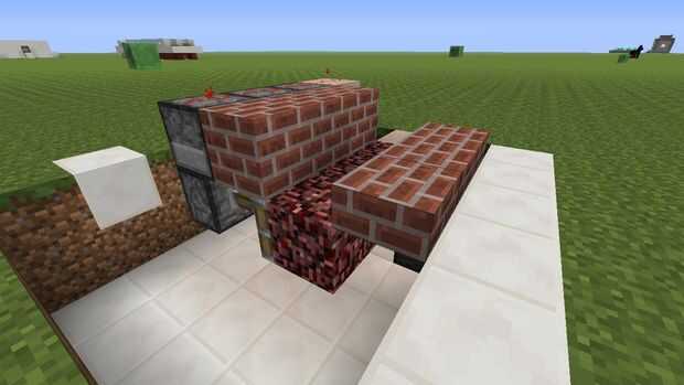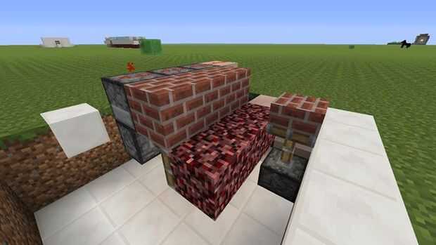 a las piezas de pistones pegajosos 3 de netherrack. Luego ponga tres bloques de ladrillos sobre los depósitos después dos losas de ladrillo más Unidas a la primera losa colocaste.