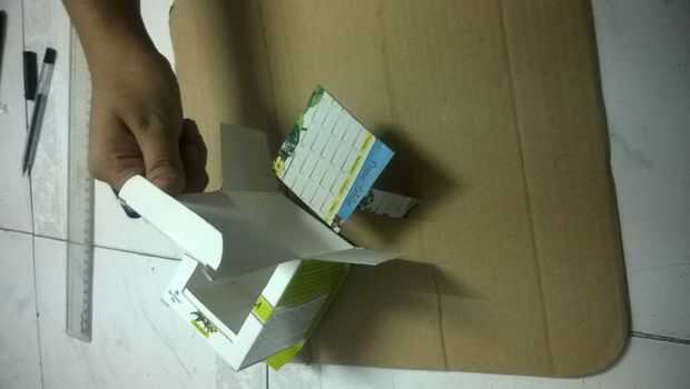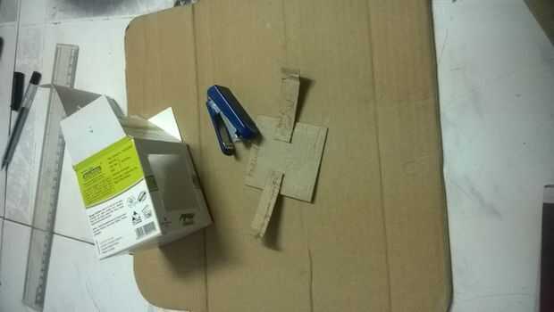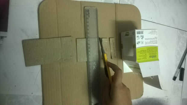 > / usando el lado de la plaza como referencia, cortar dos rectángulos que apoyarán la Plaza cartón dentro de la caja, como hizo anteriormente.