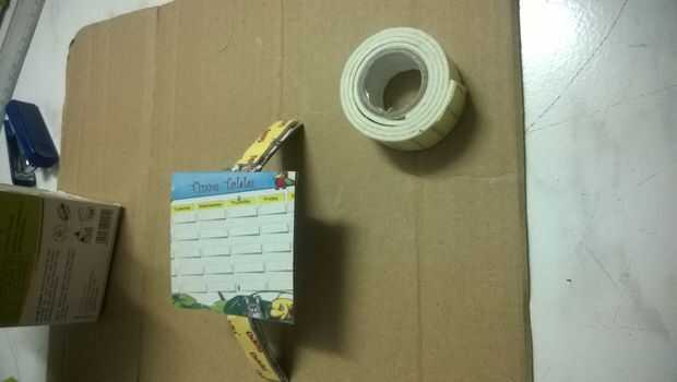> Utilice cinta de doble cara para pegar los rectángulos de la mesa a la pared interior de la caja.