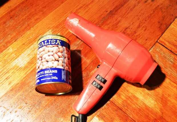 1. Ponga el cabello secador a alta y calentamiento el pegamento en la lata.