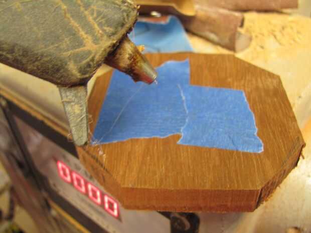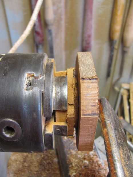 A la sujeción de pegamento caliente. El scrap de cedro fue fácil para el roble como sería dañar el block no era la pieza deseada. Cedro el cedro crea una oportunidad igual de daño en la pieza final. Técnica que sólo uso para piezas pequeñas es colocarle alguna cinta de pintor la buena pieza. Esto permite retiro fácil con daños. Sin embargo, fácilmente puede significar madera voladora. Para minimizar esto, herramientas de forma y cortes suaves. Si usted puede trabajar hacia el centro en lugar de lejos.