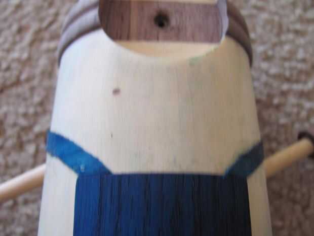 Para el diseño de estos, es necesario ir con el personaje del esbirro. Sueltamente el poner los ojos para obtener una idea de la expresión y hacer una boca para el súbdito y la madera. Foto 3 muestra un pequeño nudo que quería cubrir para arriba con la boca. Las bocas eran bastante fáciles formar como el resto de la chapa. Dibujarlos en la chapa, los áspero hacia fuera con un cuchillo stanley y luego lijar.