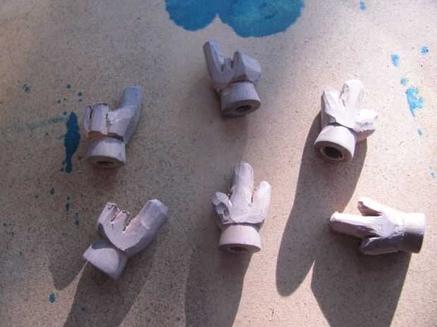 Luego hice algunos básicos que forma sobre la lijadora, creando diferentes partes planas. Desde allí un hecho cortes con la jap vieron y tallado de ranuras v usando esos cortes al centro. Luego redondea los dedos con un cincel de talla pequeña y arena a la forma. Son torpe para sostener y dar forma pero de alguna manera conseguí algunas formas con que estaba feliz. También hubo otros que echaste a perder.