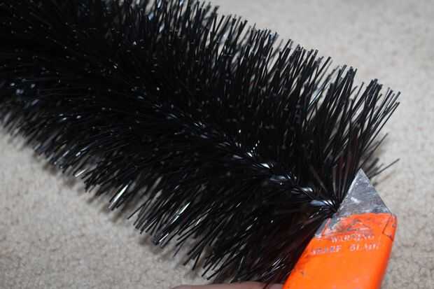 Iba a conseguir algún cable negro de bunnings pero sólo pude encontrar algunos que era demasiado grueso. Así vagué alrededor de las islas al azar que lo haría normalmente nunca Revise y encontre esto. Hojas que mantiene fuera de sus canales y tenía largos negro perfectos en 1mm de diámetro. Cortar algunos con un cuchillo stanley. Para pegar en, puse pegamento en un bloque de residuos y cruce los extremos en el pegamento. Con cuidado colocó en el agujero, no a cualquiera en la parte superior. Sólo necesitas poner pegamento en los primeros, por lo que el agujero no se llena más. Para el con el pelo que va al lado, yo sólo doblar los extremos en la parte inferior 5mm. Para conseguir un buen acabado incluso, darles un pelo cortado con un par de tijeras. Variar las longitudes un poco para hacerlo más interesante.
