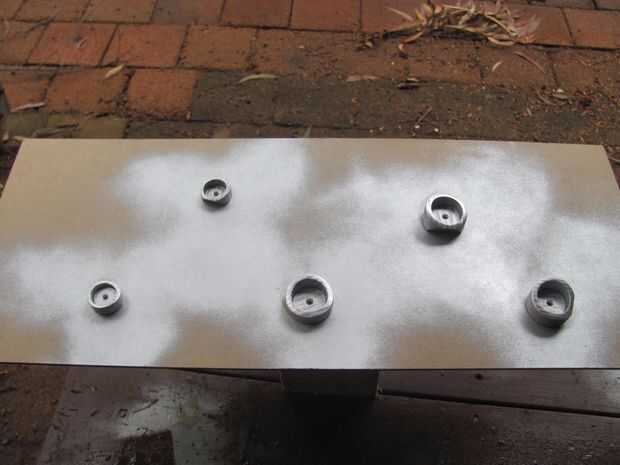 Sólo usé una lata de pintura aerosol plata. Esto dará una capa uniforme y ligera. Sólo desea una capa para que no llene el grano. Comience rociando el interior ya que es el lugar más difícil para conseguir. Deben conseguirlo todo desde 3 ángulos. Esto conseguirá naturalmente la parte superior y algunos de los lados. Desde un ángulo bajo, rociar el resto de los lados.
