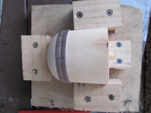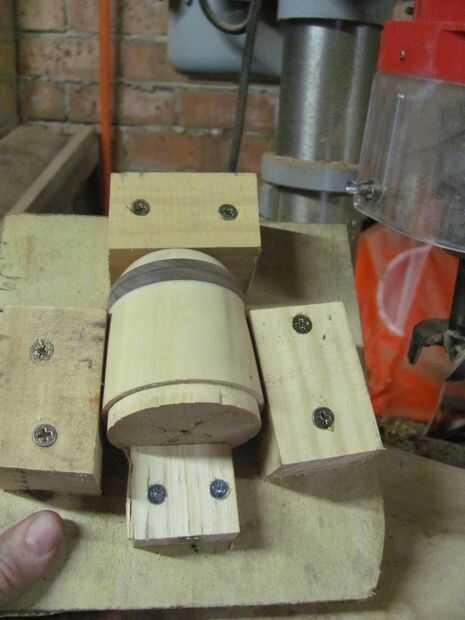 La plantilla era bastante básica con 3 tornillo de bloques más grandes a un una pieza de contrachapado. Este sistema una parada en superior y limitado movimiento de lado a lado. Una cuadra más pequeño con un tornillo pero en la parte inferior para atornillar la base del cuerpo para bloquearla realmente. Afortunadamente, funcionó a la perfección. Para ajustar para que las diferentes formas, a mover los bloques (foto 6-7).