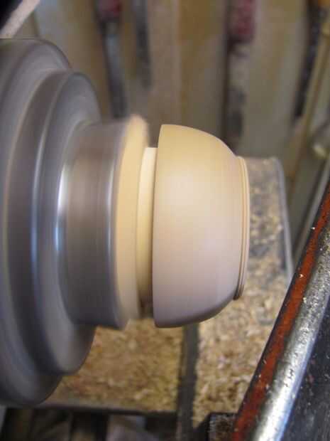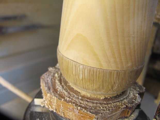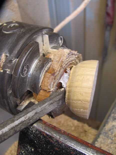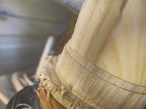 Ahora puede empezar a forma la parte inferior de la set diámetro usando gubias y cinceles cerca de los residuos de la tirada de cola de inclinación. Intente sacar tanto como puedas. Con un cincel de madera estándar, levante la pieza de la bloque del wast. Dependiendo de la cantidad de pegamento, esto puede ser fácil o difícil, pero recuerde, dañar el bloque residuos si tienes que.