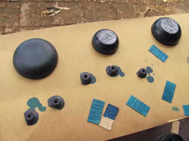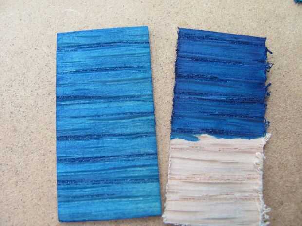 Tuve un poco de un problema. Aunque la chapa y sólidos eran tanto roble, el sólido era más amarillo en el color como se ve en la foto 1. Esto significó que tengo mono de azul y un tinte verdoso a la sólida. No fue un gran contraste. A través de la experimentación he añadido más mancha por inmersión mis piezas para realmente cubrir la pieza con color y no limpiar. La diferencia se ve en la foto 3. Por unas cuantas capas de manchas pude ahogar entonces tenía un color similar. Iba a ser una diferencia leve pero lo tengo cerca