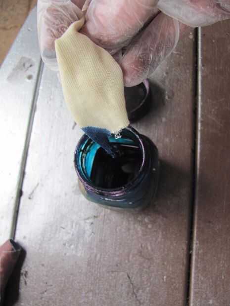 Esto fue un poco un experimento me fui. He utilizado unas manchas de pigmentos diferentes en el trabajo pero las manchas de tinte son un poco más difíciles de usar. Normalmente con una mancha, pásele en el paño embebido en la mancha y luego limpiar con un trapo limpio. Hacer una superficie entera en unos para evitar manchas de marea.