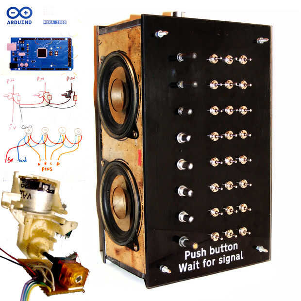, .using arduino mega 2560 y un conmutador rotatorio accionado motor, iv agregó un amplificador + altavoces en la caja.