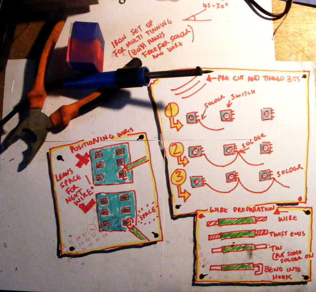 corte 7 cables del enlace un poco más largos que necesitan, luego estañar las 14 puntas, poner un alambre en un extremo colocar el otro extremo la soldadura y esa conexión de la soldadura de uno de los extremos del puente próximo.