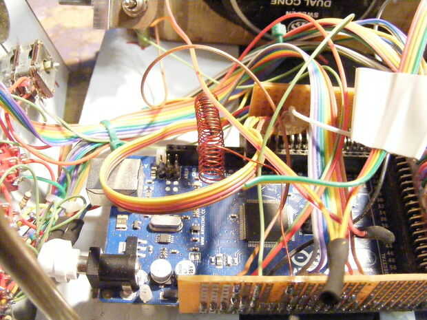 el alambre espiral está allí para ayudar a la función de inicialización aleatorio (muy ingeniosa), crea aleatoriedad usando interference.its electrostáticos utilizado en modo 2. Añadir el randomSeed en configuración, luego en cualquier momento que puede leer el pin de un número al azar.