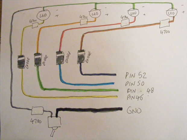he usado resistencias de 4700 ohms para los leds, quiero sólo un poco de luz de ellos y no desea cocinar mi Consejo, que deberían estar usando 1milliamp
