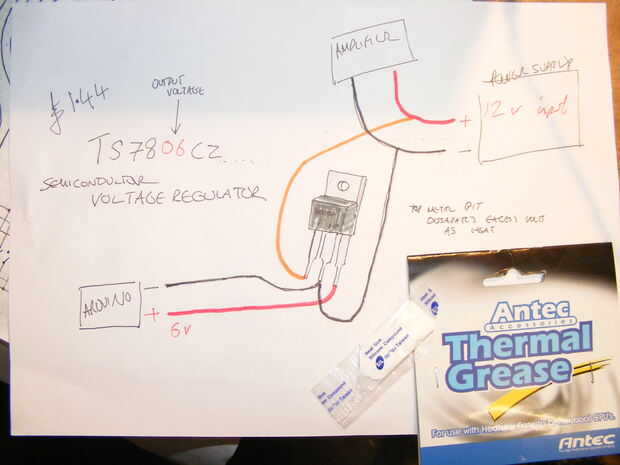 He utilizado un montón de encogimiento de calor para asegurarse de que su aislamiento, un tornillo encajado en los amperios del disipador de calor aletas mantiene que en contacto con un poco de fresco grande de metal.a un poco de grasa térmica en la parte posterior.