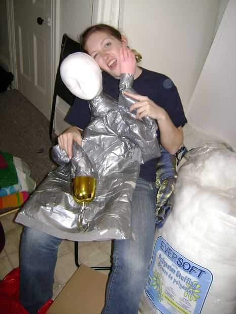 Cosas el torso con bateo de. No hagas demasiado llena o no se sienta lo suficientemente cerca para la sirena. Cuando está bien relleno, cinta por la parte inferior.