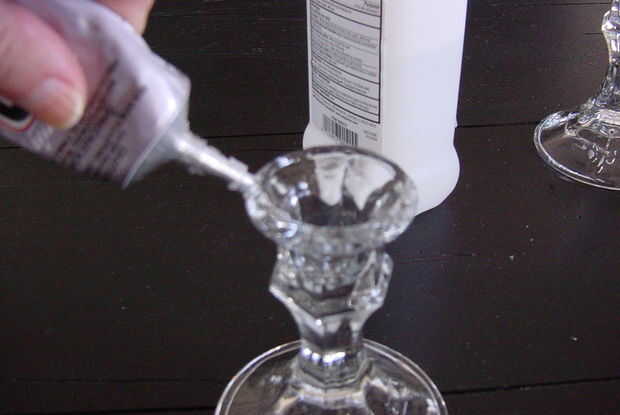 El pegamento E6000 dice que aplicar pegamento a ambas superficies que se pega. Apliqué una capa delgada de pegamento en ambos el fondo tarro conservas donde se sentará el palillo de la vela, así como el borde de la vela. Mantener el grano fino, o tienes un lío... me preguntan cómo sé!