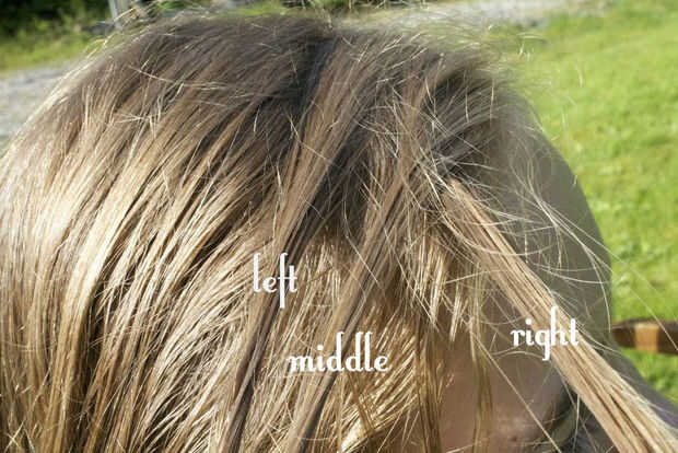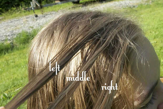 Si ya sabes al francés trenza de saltar al paso 4. Si usted está absolutamente despistado en trenzado francés, este es el lugar para estar. Nosotros le llamamos las tres, incluso piezas de cabello izquierdo, central y derecho. En primer lugar, tomar la hebra derecha y cruzarla sobre el filamento medio. Ahora la derecha es en el medio y su medio es a la derecha. A calibrar y re-lable la misma imagen a donde los filamentos deben ser ahora, de izquierda a derecha, izquierda, centro, derecha.