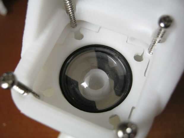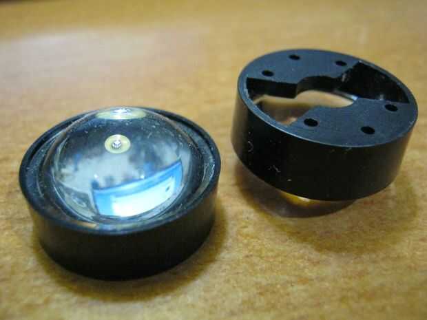 La lente como una lente de la cámara interior es realmente un colimator de LED granangular que está disponible en el mercado. La cam se verá muy real con él. Hay 4 agujeros para los leds de 3mm que imitarán a los leds de iluminación IR dentro de la cámara. También hay un espacio vacío interior por lo que si te gusta puedes poner un circuito para flash, o a anyhting más. Incluso una cámara real puede colocarse, haciendo mi diseño no un muñeco pero una cámara de seguridad real. EBay está lleno de pequeñas cámaras, muchos de ellos inalámbrico que puede caber dentro. También es una cosa ficticia de antena inalámbrica en la parte superior.