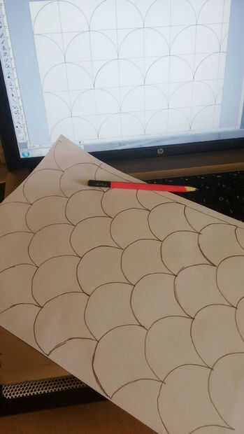 Decidir sobre el diseño que quieras en la tela. Fui con un patrón simple ogee y transferir el diseño sobre una hoja de papel. Usé este papel para trazar el patrón en mi tela.