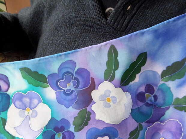 Estos pensamientos fueron pintados sobre seda habotai, el mismo que utilizamos en las sesiones de parcs de centro, utilizando hierro fijar tintes. He disfrutado haciendo esta versión también. Menos intenso que el fix de vapor pero muy divertido de usar y fácil de solucionar con una plancha.