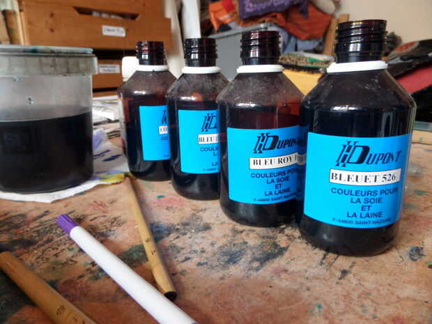 Estas son mi vapor fijar tintes, vienen con un montón de sombras tentadoras. Generalmente enseño con las pinturas de fix de hierro ya que son fáciles de arreglar y no es necesario el vapor costoso, (más sobre esto más adelante). Disfruto con estas pinturas como usted puede construir más colores en la seda creando efectos interesantes, pero se toman el tiempo para conocer.