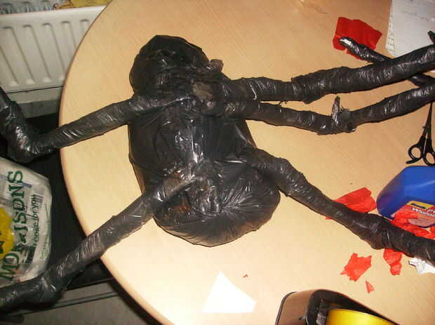 Con un pequeño cuadrado de papel rojo y un poco de pegamento de pva puede dar su araña pies jazzy!! Sólo poner un pequeño poco de pegamento en los extremos de las patas y apriete el papel sobre ella. También puede utilizar papel de repuesto para hacer la tradicional marca de reloj para cocer huevos Black Widdow o cualquier cosa que usted desea! He utilizado pedazos pequeños de papel rojo para algunos ojos rojos hermoso simplemente jodido y pegado en la.