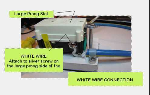Conecte el cable blanco cable de cable para montaje del tornillo de plata en el lado del diente ancho de la salida.