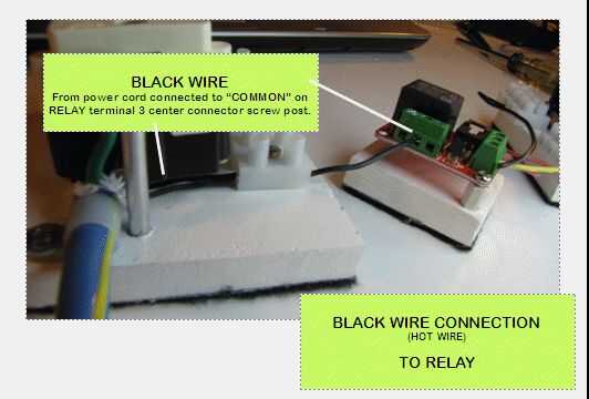 NEGRO de conectar el cable del cable de alimentación al post del tornillo del centro del "Común" o la Terminal 3 en el relé.