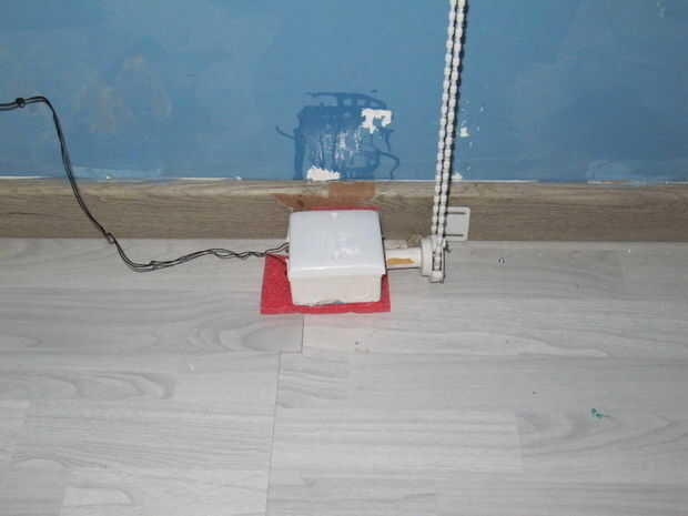 Aquí utilizamos un motor de alto torque y un engranaje para tirar de la cortina. El motor se fija en una caja blanca como la foto siguiente muestra.