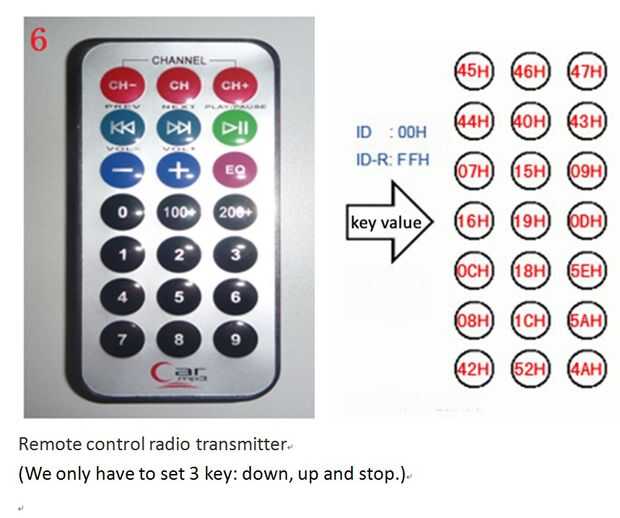Utilizamos un transmisor de radio control remoto lindo para enviar la señal del control remoto, RPM6938 IC recibe la señal IR y dar los datos a Seeeduino v2.2. Seeeduino v2.2 descodifica los datos para que el MCU puede reconocer Qué tecla hemos insistido.