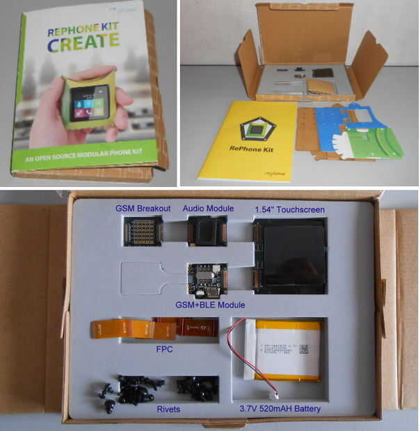 El núcleo del RePhone es proporcionado por Xadow GSM + BLE o por núcleo de RePhone módulo de 4 G, más allá de estos dos núcleo módulos 8 módulos más encadenados para ampliar las funcionalidades y características. Sin embargo, si usted quiere construir su propio smartphone en minutos, el "Seeedstudio RePhone DIY Kit" es el camino a seguir, incluye todos los componentes básicos necesarios para construir un smartphone GSM.