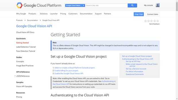 https://Cloud.Google.com/Vision/docs/Getting-Started
