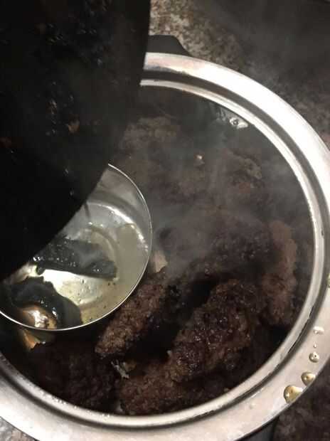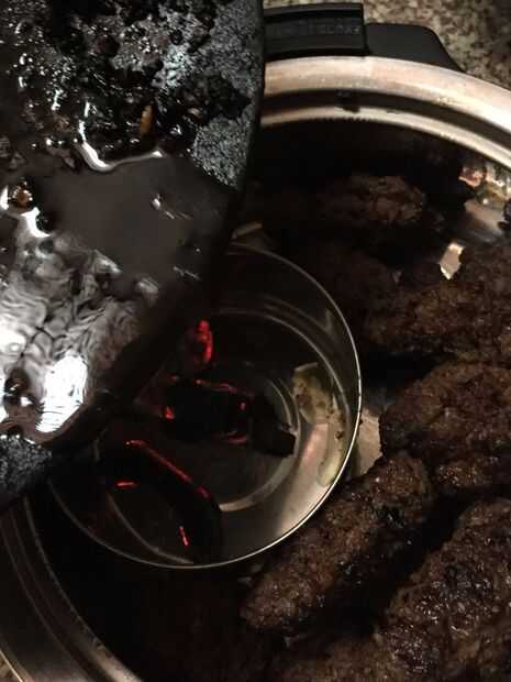 Vierta el aceite caliente freír previamente en el carbón y cubrir rápidamente su estofado tan pronto como usted vea humo. NO DEJES ESCAPE DE HUMO.