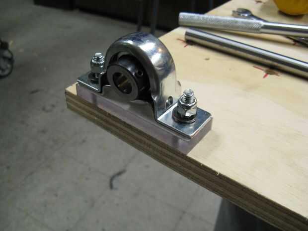 Los rodamientos se unen con pernos de 1/4-20. En este caso, requieren espaciadores de 1/2" para que coincida con la altura de la broca. Al mismo tiempo fije todo, es útil para poner el eje en el cojinete y tirada del taladro y posiblemente hasta que el funcionamiento del motor del taladro. Esto asegura buena alineación como zip-atado/atornillado/atornillado/qué cosas tienes.