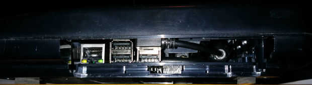 Entonces localicé el PI en el caso con el borde frontal de los conectores Ethernet y HDMI en la sección plana de la caja al lado de la ampliación de apertura. Usé algunos perpex tuvo que hacer separadores y encolar antes de perforar los agujeros y asegurar el Pi con tornillos.