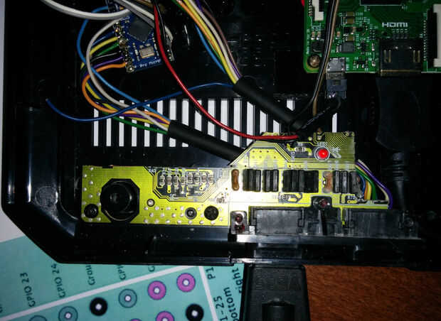 También conserva el LED y funcionó encendido un pin GPIO de 5V y GND al LED y el resistor montado superficial que está justo al lado de él. Resultado es una potencia LED que funciona exactamente como el original!