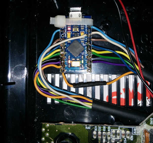 Todos los dieciocho cables deben soldar perfectamente al Arduino Pro Micro. Usé un cable tie mount para mantenerlo en su lugar final.