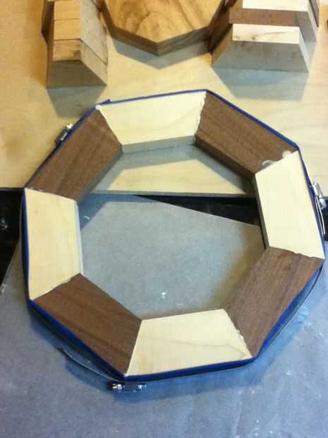 Use pegamento para madera amarillo. He utilizado Titebond yo es fino para este proyecto y bastante barato para arrancar. tienes un 10-20 minutos ajustar hora y el pegamento se limpia muy bien con agua.