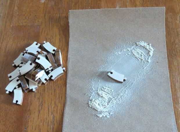 Ahora ligeramente lijar los pisos de cada uno de los segmentos.  Esto ayudará a eliminar cualquier fibras a lo largo de los bordes de la madera que podría se han quedado por el proceso de corte y ayudará a asegurar que el anillo es tan plano como sea posible cuando se está montando.